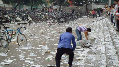 不過撕書歸撕書,而像南充這名女生提前寫信致歉的舉動(dòng),還是讓人稱贊。在以前關(guān)于撕書的諸多討論中,我們往往更強(qiáng)調(diào)學(xué)生有宣泄的權(quán)利,他們的三年高中生涯太辛苦太不容易,好不容易有一個(gè)釋放學(xué)業(yè)壓力與青春荷爾蒙的出口,不妨讓他們盡情地撕扯吼叫等等。這些說法并沒有錯(cuò),但似乎也該考慮一下保潔員的感受,孩子們不容易保潔員就容易嗎?面對(duì)著世界末日般沸沸揚(yáng)揚(yáng)的紙屑,保潔員的辛苦誰來理解?